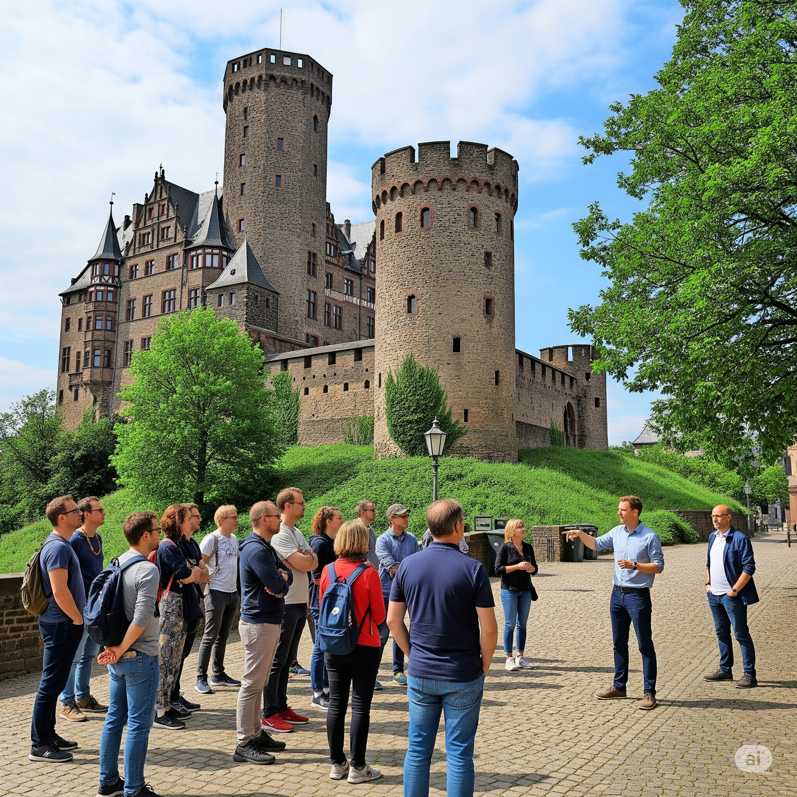 Our expert guides will lead you through Bielefeld’s charming old town and green spaces. You’ll traverse historic streets, uncover powerful reminders of its past, and encounter vibrant cultural hubs. Here, you’ll hear compelling accounts of its history, from its beginnings around Sparrenburg Castle and its growth as a linen manufacturing powerhouse to its impressive transformation into a modern, diverse metropolis that continues to inspire. Furthermore, gain insight into Bielefeld’s distinct essence beyond the main attractions, delving into local life and intriguing anecdotes that vividly bring the city to life.