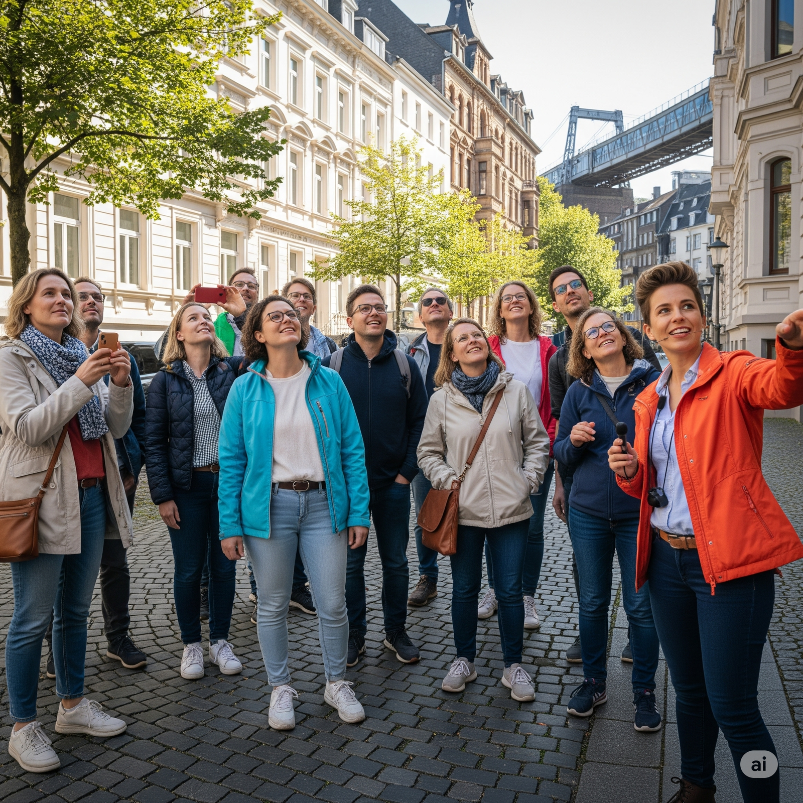 Our expert guides lead you through Wuppertal’s unique suspended railway route and green valleys. Traverse urban landscapes and find vibrant cultural hubs. You’ll hear compelling accounts of the city’s past: from its beginnings as an industrial powerhouse to its pioneering industrial heritage and impressive green transformation. Gain insights into local life and intriguing anecdotes, truly bringing Wuppertal to life.